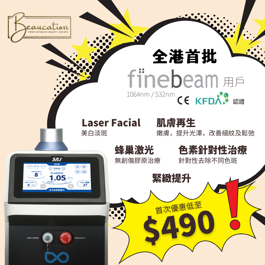 我哋引入咗由韓國頂尖激光製造商SNJ嘅finebeam Q-switch Laser。呢部Laser可以幫我哋解決更多皮膚問題。